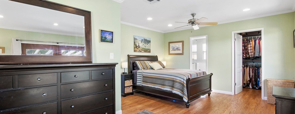 Escape to the generously sized primary bedroom with easy access to the backyard, a custom walk in-closet to maximize organization, and recently remodeled bathroom. The ensuite bathroom features a double sink vanity, hexagon tiled floors, glass shower, white subway tile surround, matte black finishes and fixtures, and a neutral paint palette. The recently renovated hallway bathroom serves the two additional bedrooms, one with dual walk-in closets for extra storage. The thoughtfully redesigned backyard is the perfect place to enjoy the year-round sunshine. Dine al fresco on the patio under the pergola, use fresh lemons from the lemon tree to enhance your meal, and enjoy plenty of yard space complete with a storage shed for extra storage. The oversized garage has additional storage space as well as laundry.